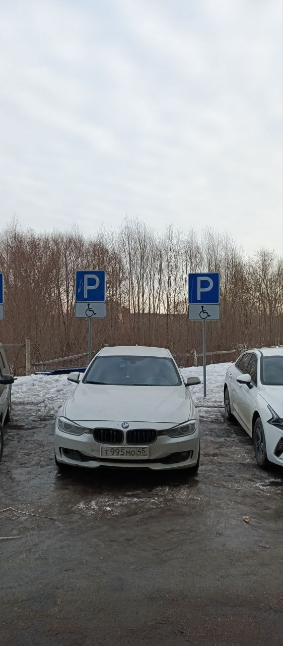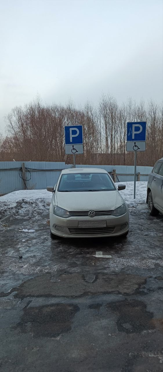 МО, г. Люберцы, мкр. Мирный, ул. Академика Северина, 7/1. Парковка на месте, предназначенном для инвалидов.