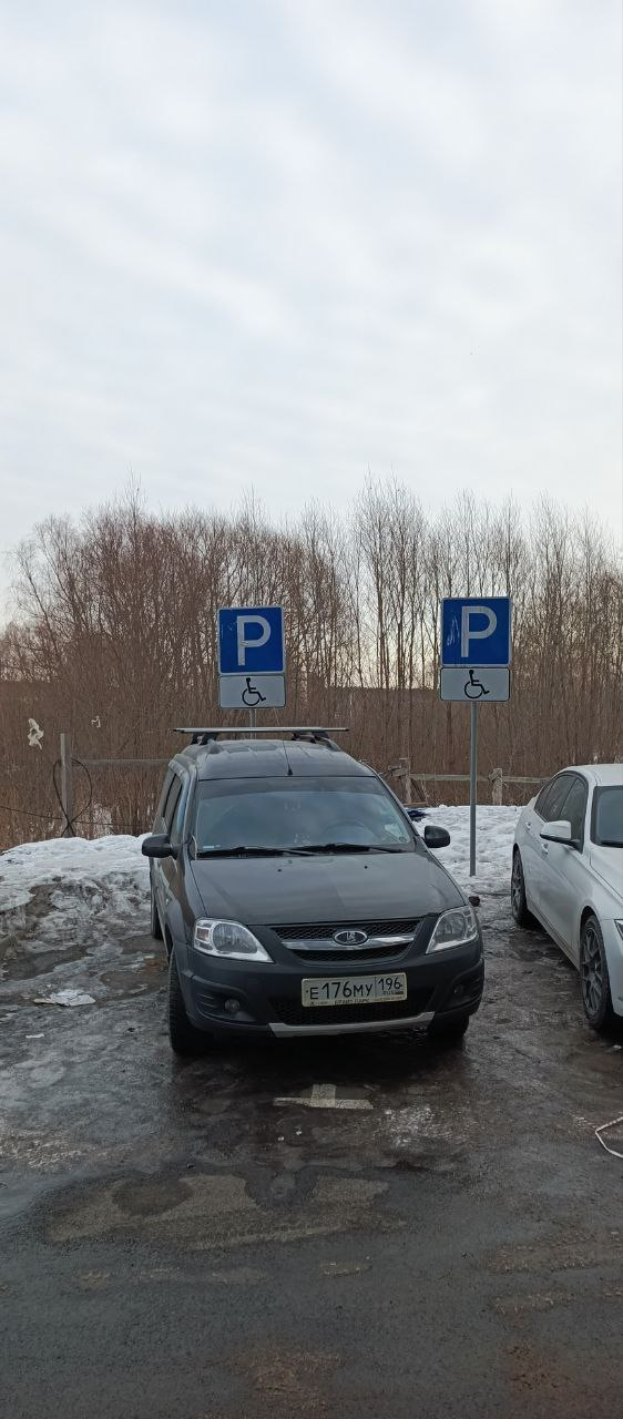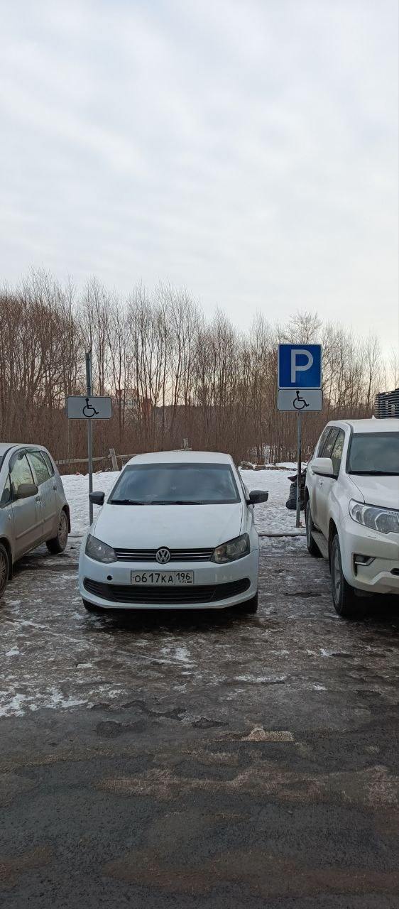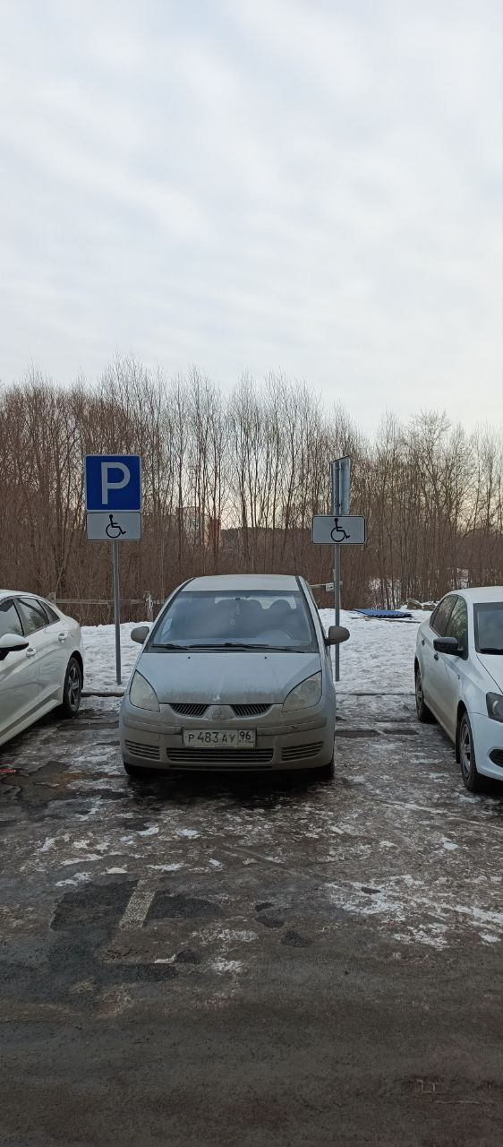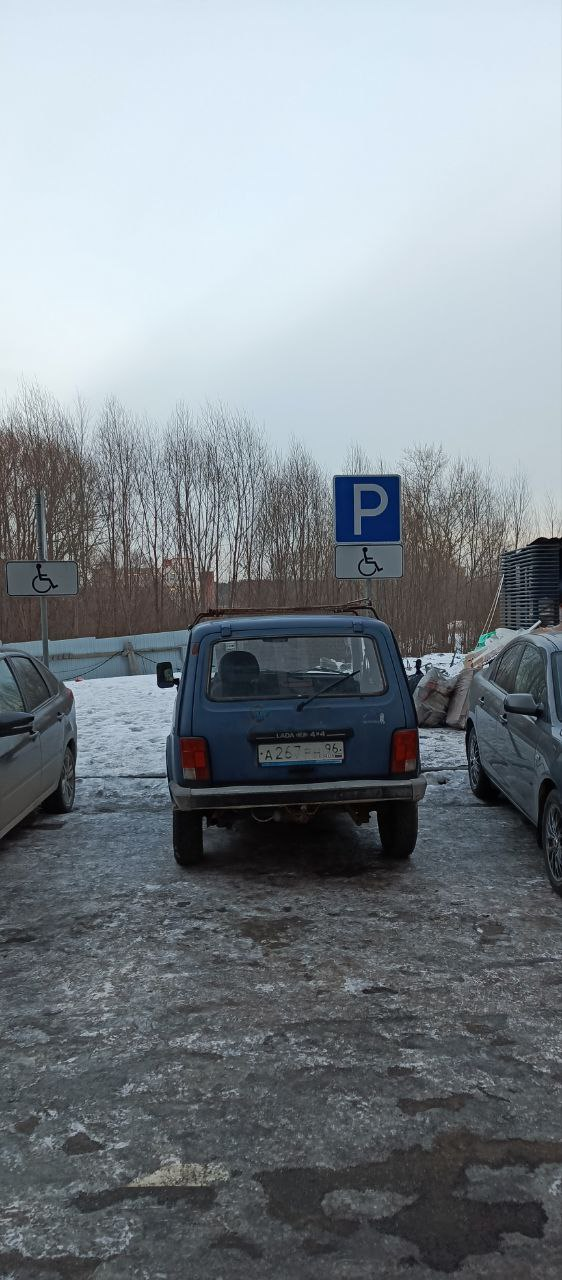 Г. Екатеринбург, ул. Хуторская, д. 1/4 (парковка с торца здания). Стоянка на местах, предназначенных для лиц с ограниченными возможностями, не имеющие установленного знака «Инвалид». Фото прилагаются.