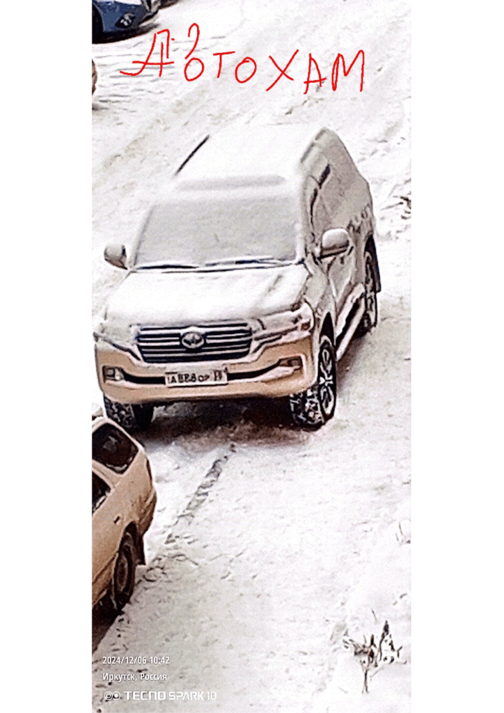11.12.2024 г., г. Иркутск, Куйбышевский район, мкр. Топкинский, 65. Водитель автомобиля А888ОР38 неоднократно паркует машину на тротуаре, нарушая ПДД и затрудняя проход пешеходам.