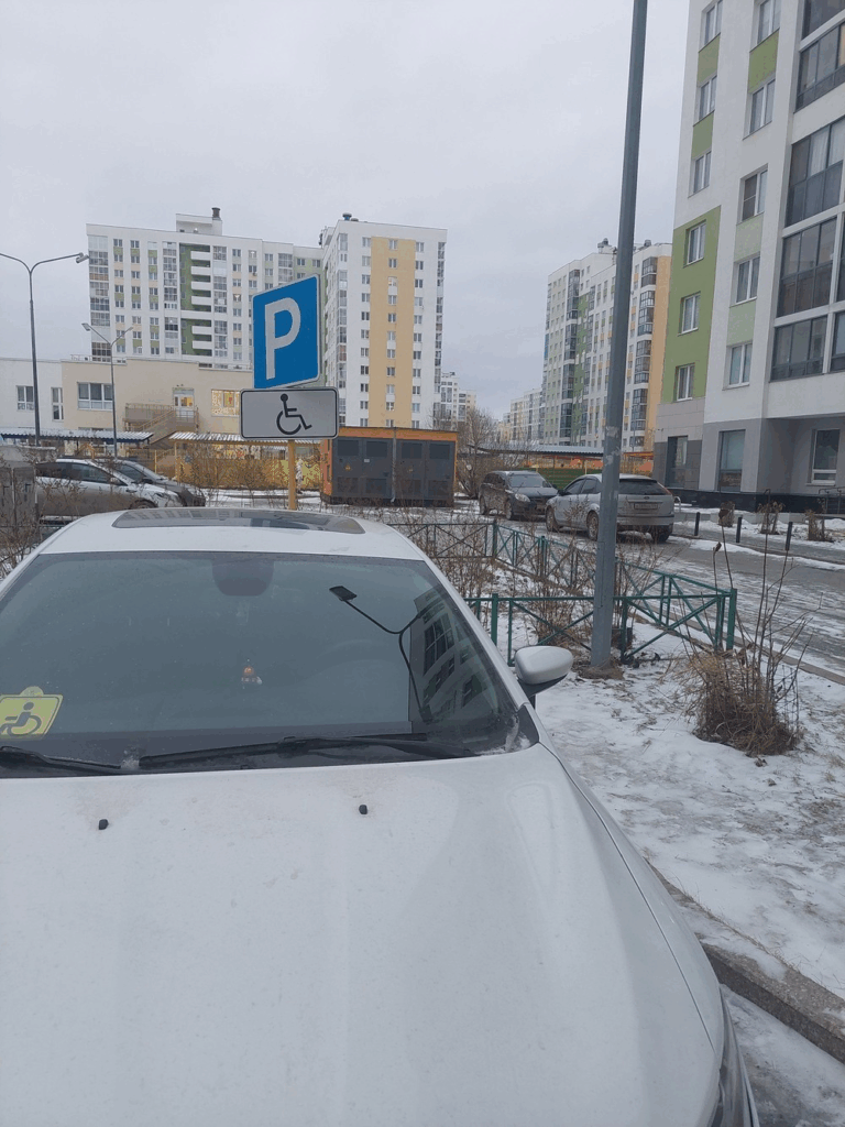 11 декабря 2024 г., примерно 18:30, Московская обл., г. о. Домодедово, д. Павловское, ул. Колхозная, д. 10. Стоянка под знаком «Место для инвалидов». Номер авто: О165ОА46.