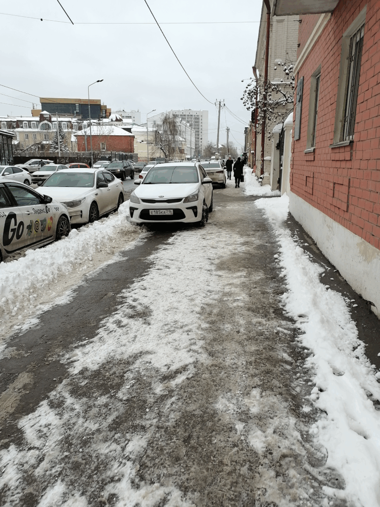 11.12.2024, 13:27. г. Казань, ул. Нариманова, 50. Снова ставят машины. Ну сколько они будут эти свинства делать? Поставьте тогда ограждение! Пусть ставят на сторону кафе, какого черта на стороне домов ставить?