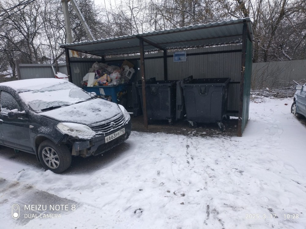 Г. Домодедово, мкр. Северный, ул. Новомосковская, 2. Контейнерная площадка. Автомобиль мешает вывозу мусора.