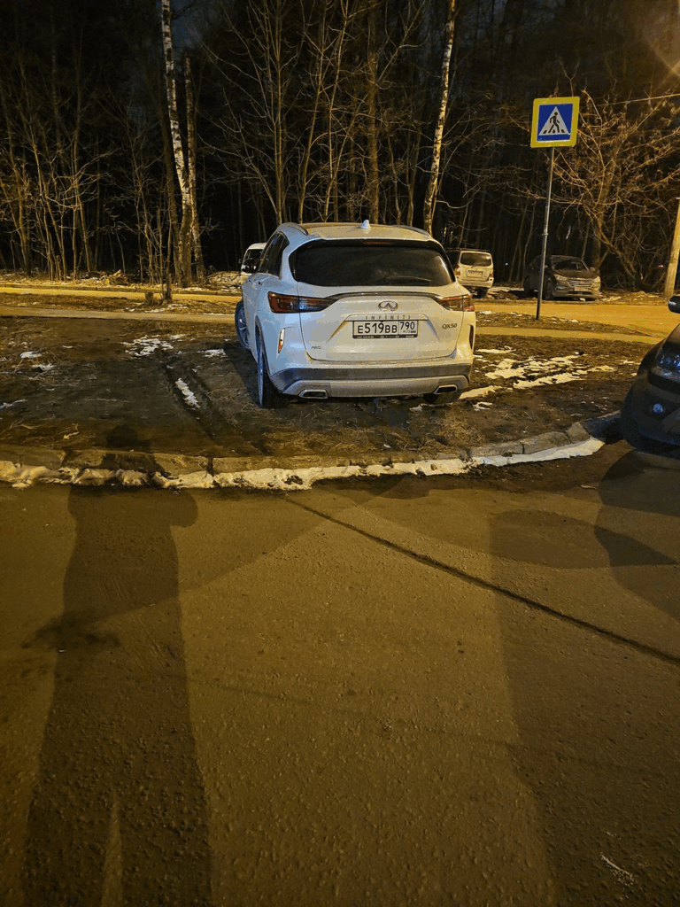 18.03.25, 19:45, Московская область, г. Балашиха, ул. Евстафьева, дом 3. Infiniti QX50 Г.Н. Е519ВВ790, Volkswagen Passat Г.Н. С100КО750. Парковка на газоне.
