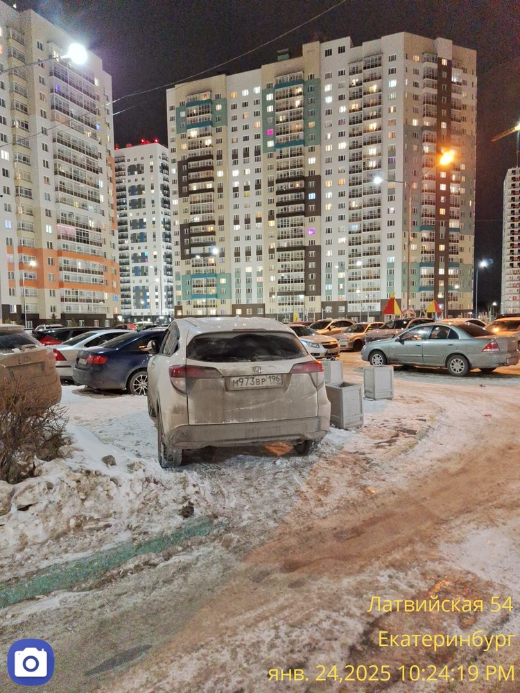 24.01.2025, 22:24, город Екатеринбург, ул. Латвийская, д. 54. Парковка на тротуаре автомобиля, г/н М973ВР196.
