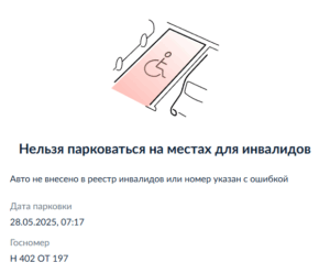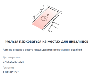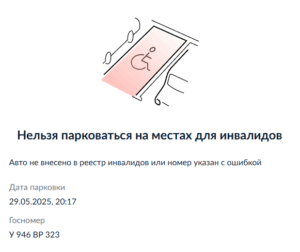 27.05.2025, 12:25, г. Москва, ул. Кадырова, д. 8 — во дворе дома припаркован автомобиль, не состоящий в реестре инвалидов.
