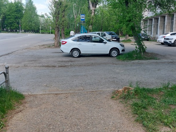 28.05.2025, Волгоград, ул. Ополченская, 8. На тротуаре возле поликлиники стоят машины.
