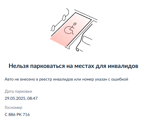27.05.2025, 12:25, г. Москва, ул. Кадырова, д. 8 — во дворе дома припаркован автомобиль, не состоящий в реестре инвалидов.