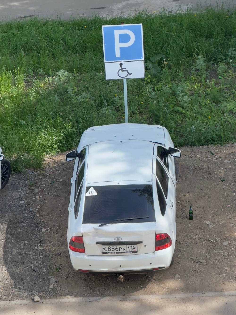 29.05.25, 08:47, г. Набережные Челны, пер. Автомобилистов, д. 1. Автомобиль Лада Приора С886РК716 припаркован на месте для инвалида.