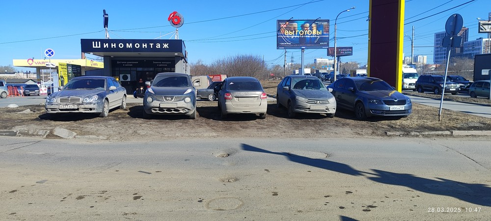 28.03.2025, 10:47, г. Екатеринбург, пр. Космонавтов, д. 17. Массовая парковка автомобилей на газоне. Автомобили: Hyundai Sonata, г.н. К577ХХ96; Nissan Juke, г.н. Т929ХС196; Lada Granta, г.н. Е523УН196; Lada Granta, г.н. С711ОН196; Skoda Octavia, г.н. О800ХМ196.