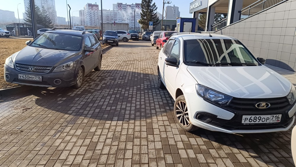 1 апреля 2025 года, г. Набережные Челны, республика Татарстан, возле Набережночелнинского проспекта, проезд между храмом преподобного Серафима Саровского и зданием наземной парковки. Серый Dongfeng с госномером У430МУ716 заехал на газон, а белая Гранта с госномером Р689ОР716 загородила проезд. Мы опоздали на работу из-за этого. Координаты на карте: 55.702425, 52.326228.