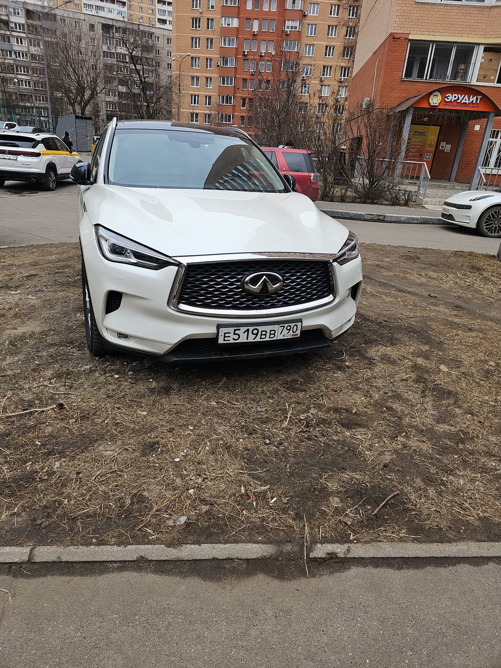 01.05.2025, 14:28, Московская область, г. Балашиха, ул. Евстафьева, д. 3. Infiniti QX 50, г.н. Е519ВВ790, парковка на газоне.