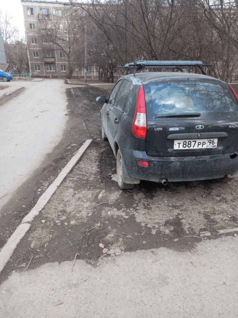 27.03.2025, 08:13, г. Верхняя Пышма, ул. Александра Козицына, д. 8. Парковка на газоне. Прошу привлечь к ответственности и взыскать дополнительно за причинение ущерба благоустройству территории.