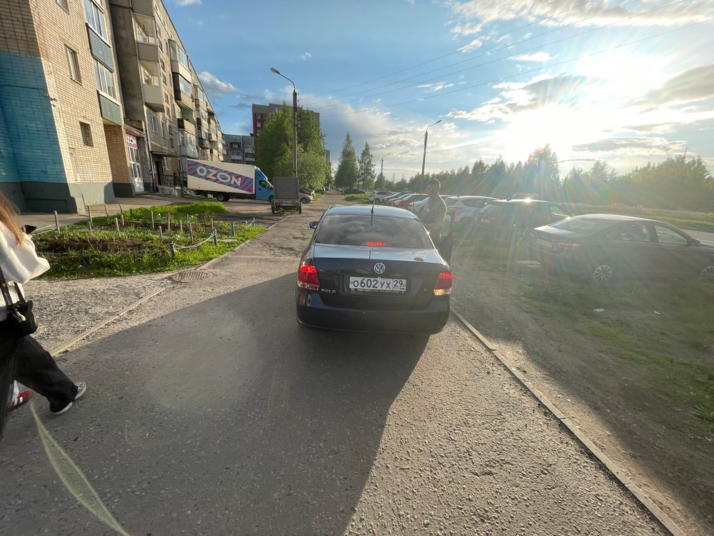 Архангельская область, г. Северодвинск, ул. Юбилейная, д. 7. Данный автомобиль проезжает по тротуару.
