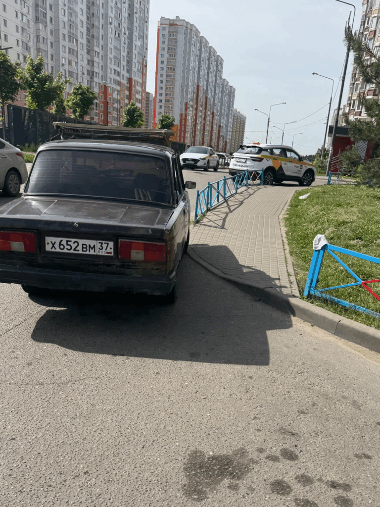29.05.2025, 09:35. Московская область, д. Дрожжино, между домами: Новое шоссе, д. 8, корп. 2 и Новое шоссе, д. 8. Автомобиль с госномером Х652ВМ37 перегородил пешеходам съезд с тротуара, создав препятствие для прохода с детскими и инвалидными колясками.