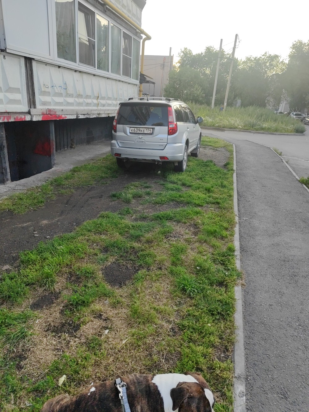 Московская обл., г. Балашиха, мкр. Салтыковка, ул. Черняховского, д. 26. Автомобиль на пешеходной зоне.
