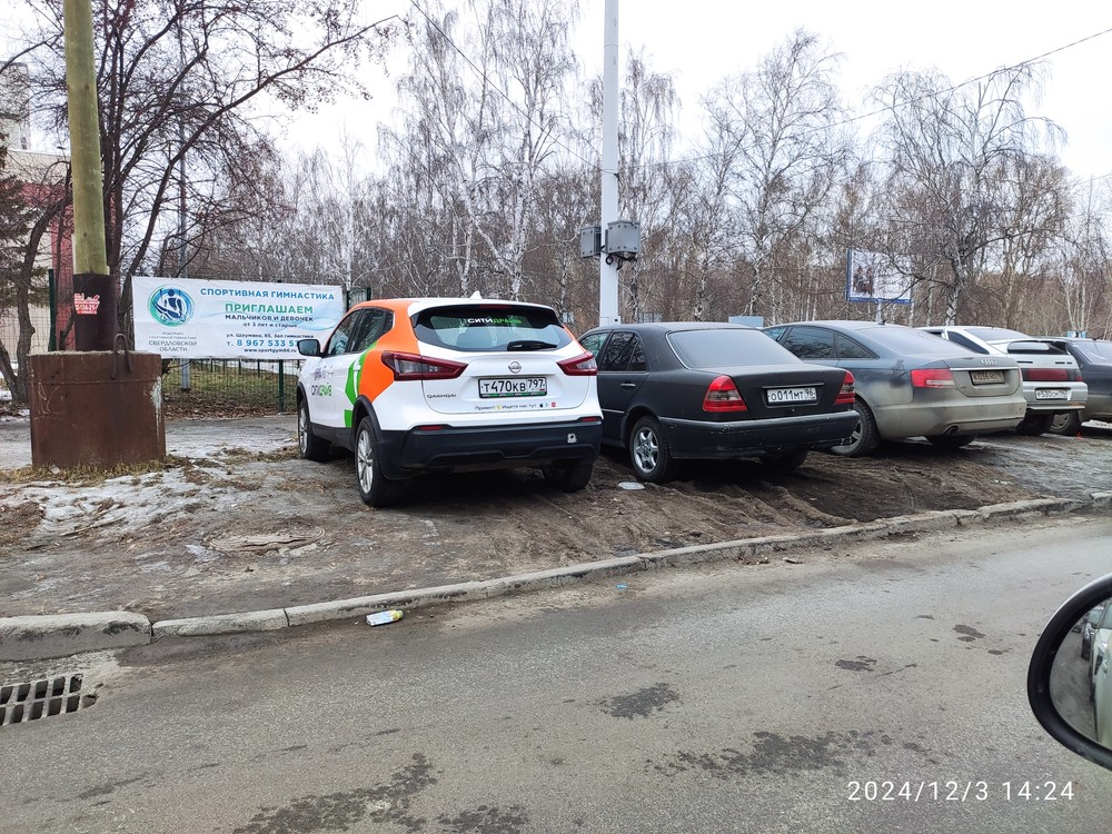 03.12.2024. г. Екатеринбург, ул. Шаумяна, 85. Парковка на газоне.