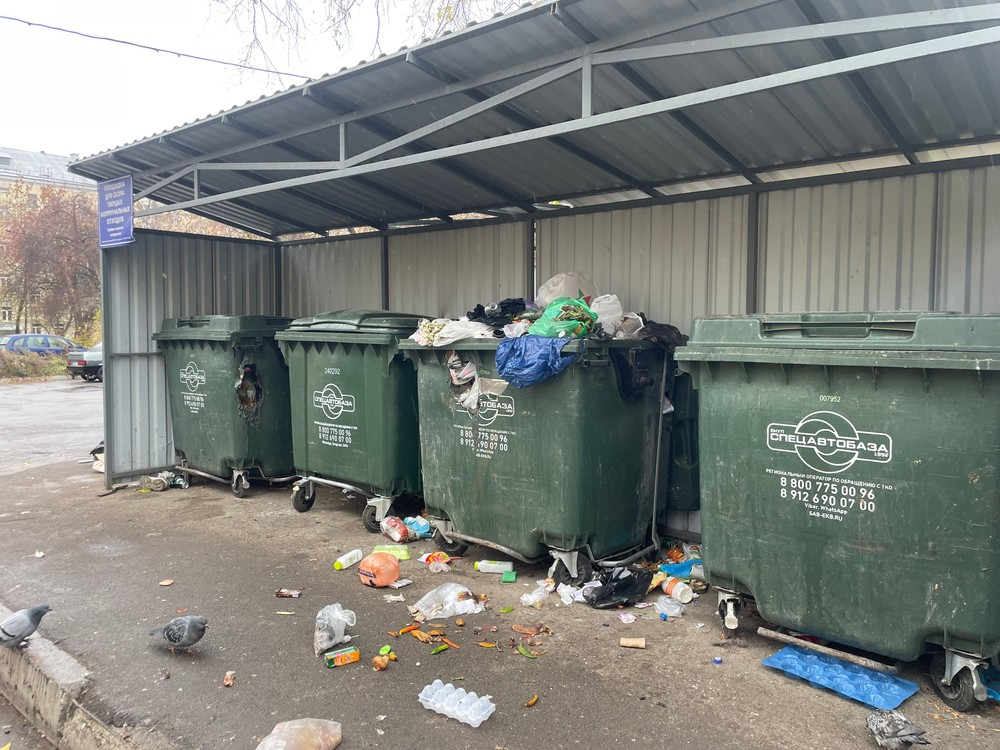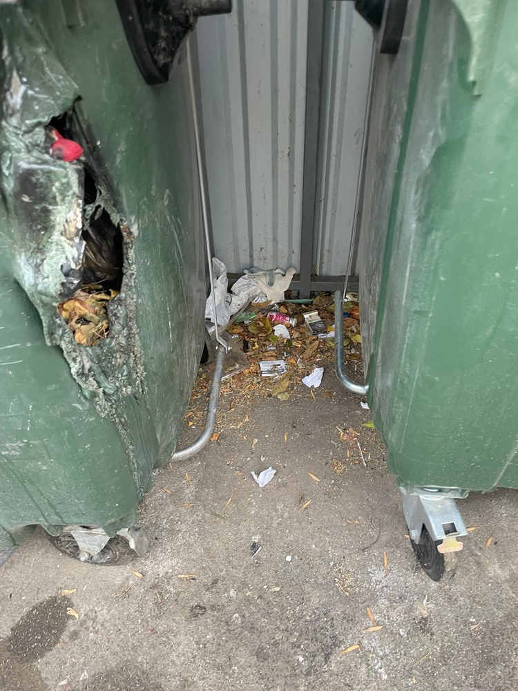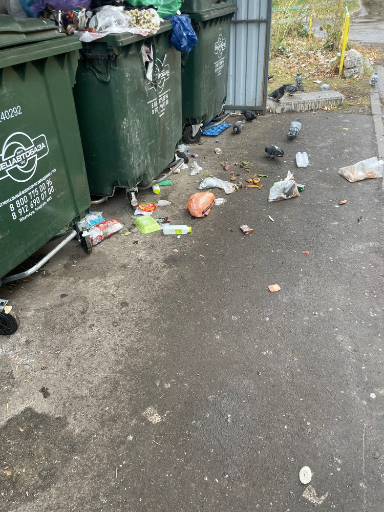 Прикрепляю фотографии, сделанные 10 октября: контейнеры остаются в прежнем состоянии, мусор валится через прожжённые отверстия, и разбросан по всей площадке ТКО. Нарушаются сроки вывоза. Неоднократно замечали, как мусоровозы фотографируют площадку и уезжают, если контейнеры заполнены частично.