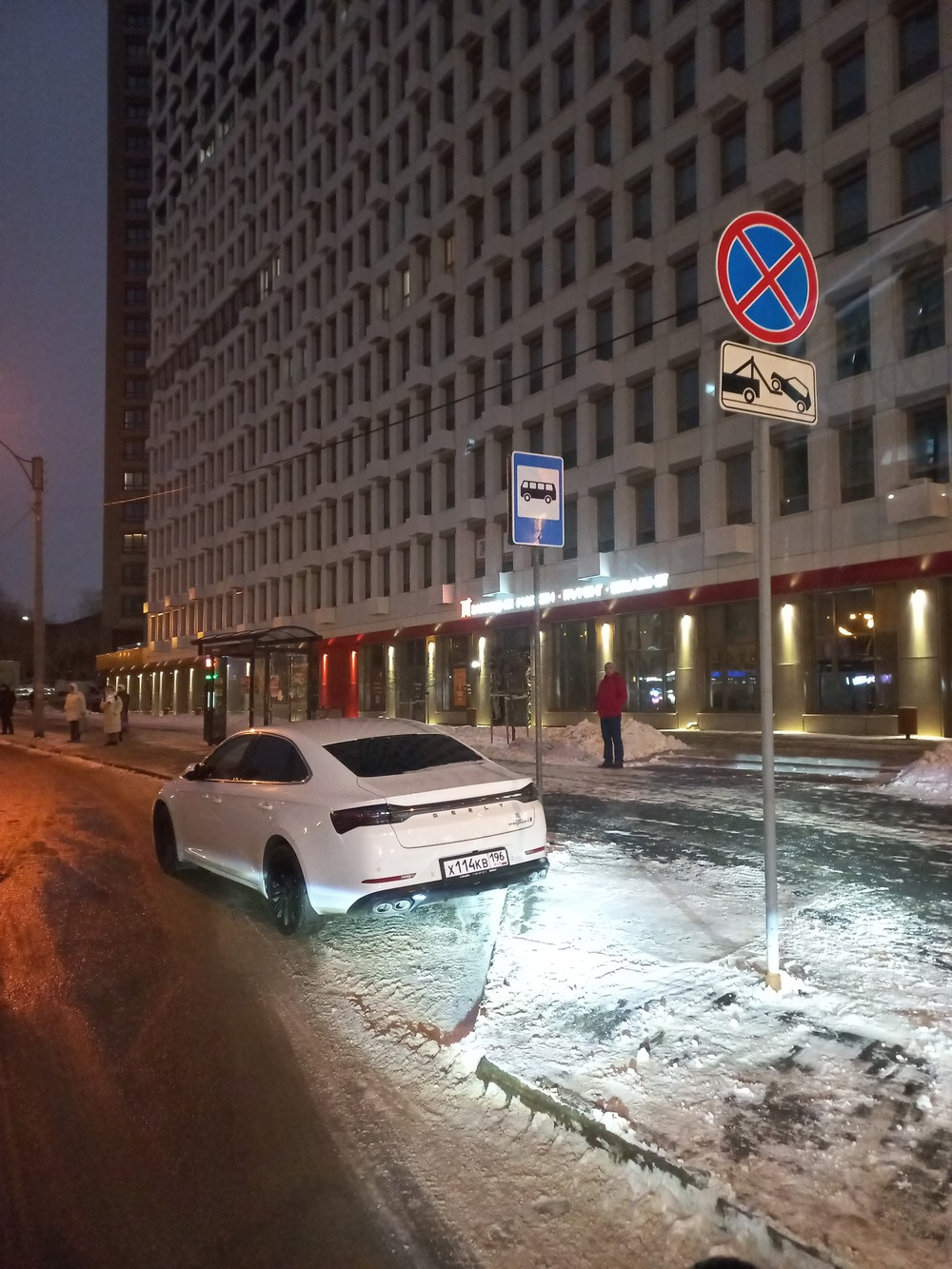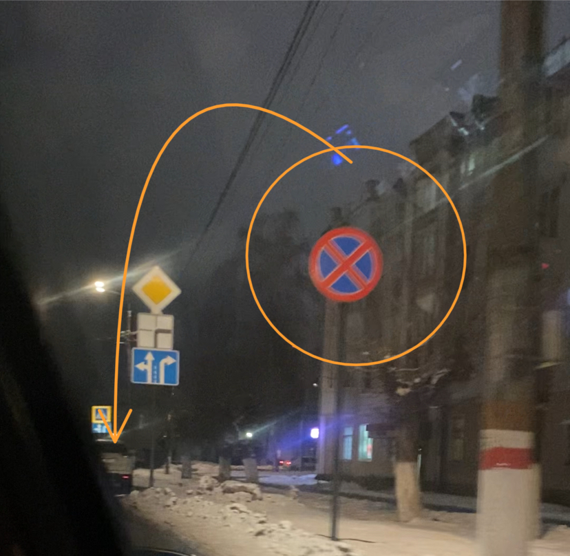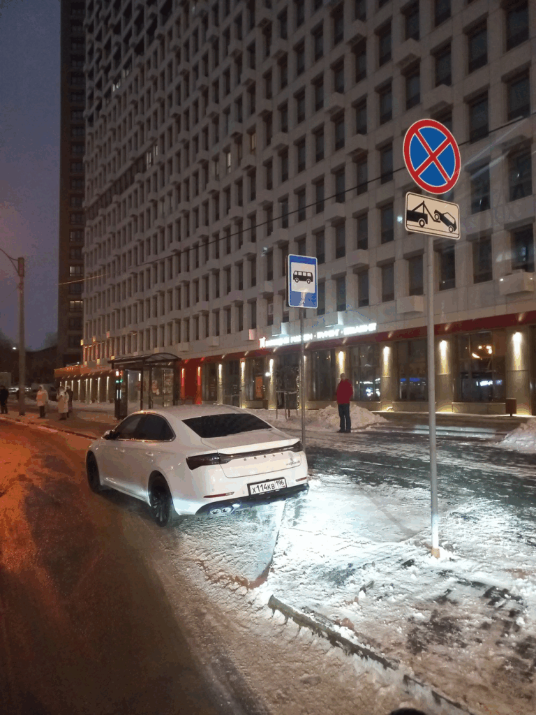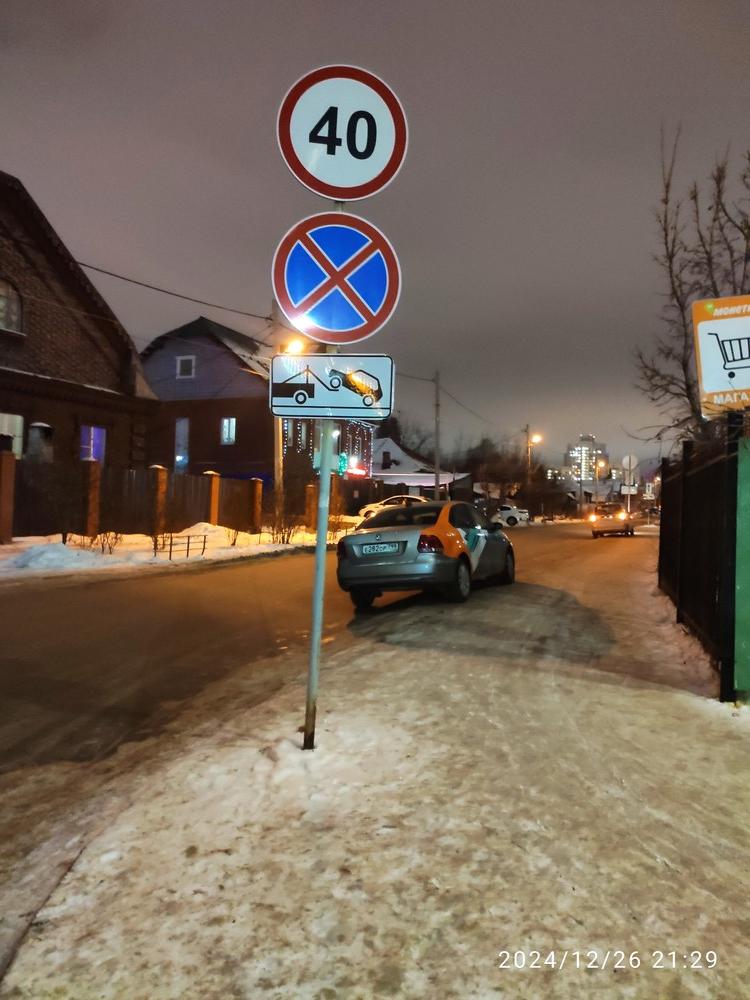 26.12.24 г., Моск. обл., Павловский Посад, Кирова, 91. Автомобиль припаркован под знаком 3.27 «Остановка запрещена».