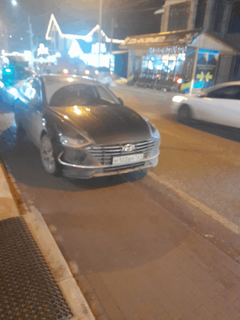 п. Архыз, ул. Ленина, напротив кафе. Чёрный Hyundai Sonata стоит на тротуаре, госномер М103ВР761.