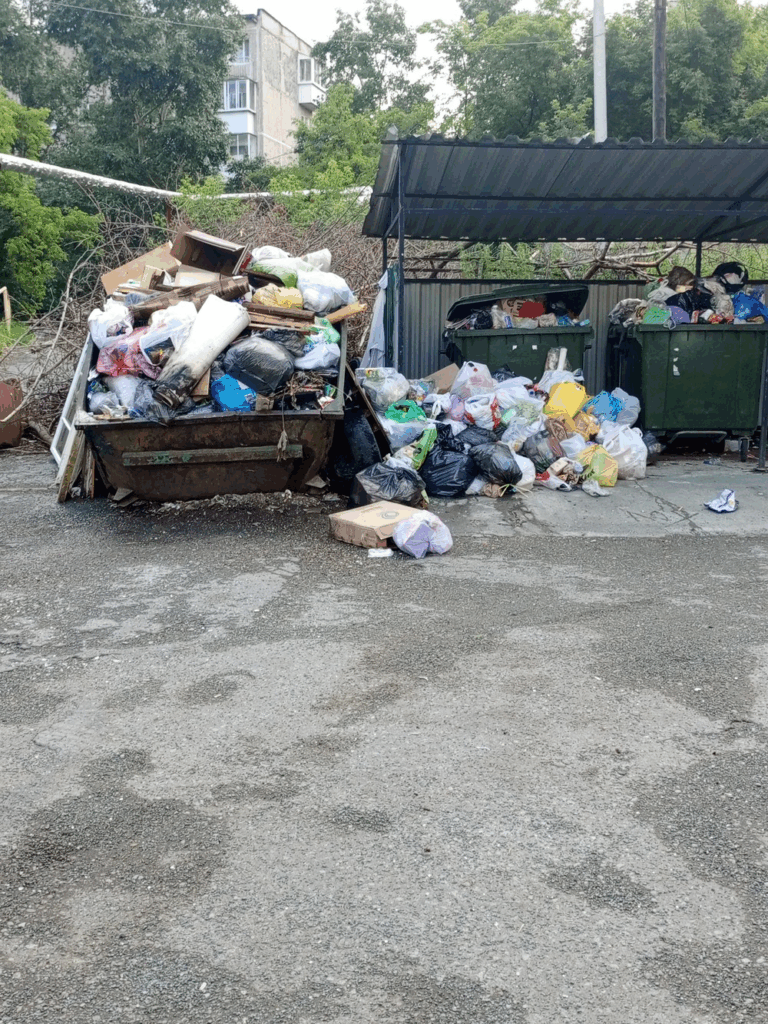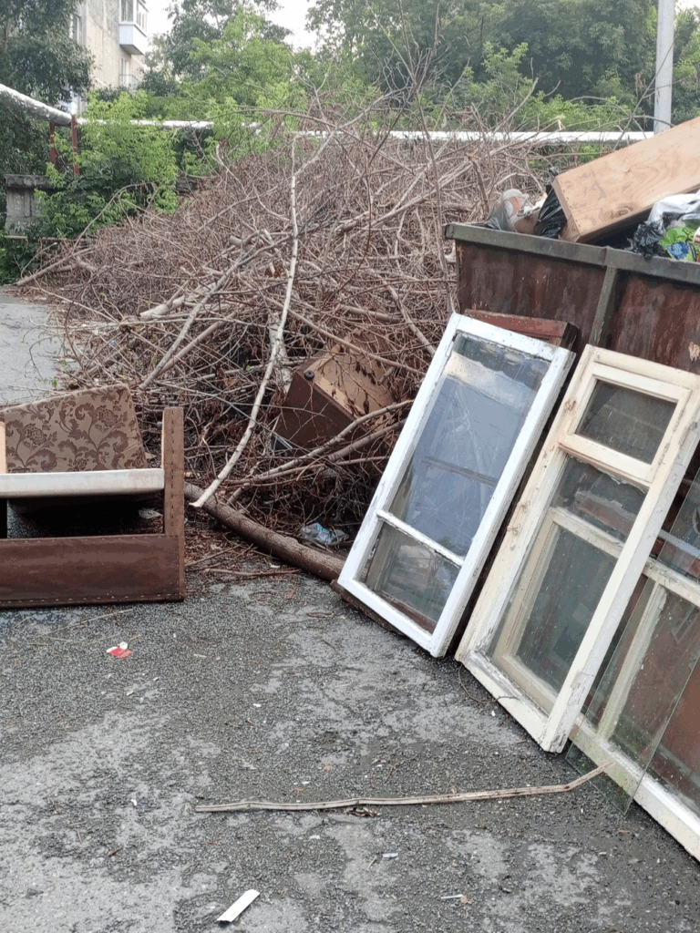 Проблема с мусором на улице Ленина в Ревде: ветки и переполненные мусорные контейнеры
