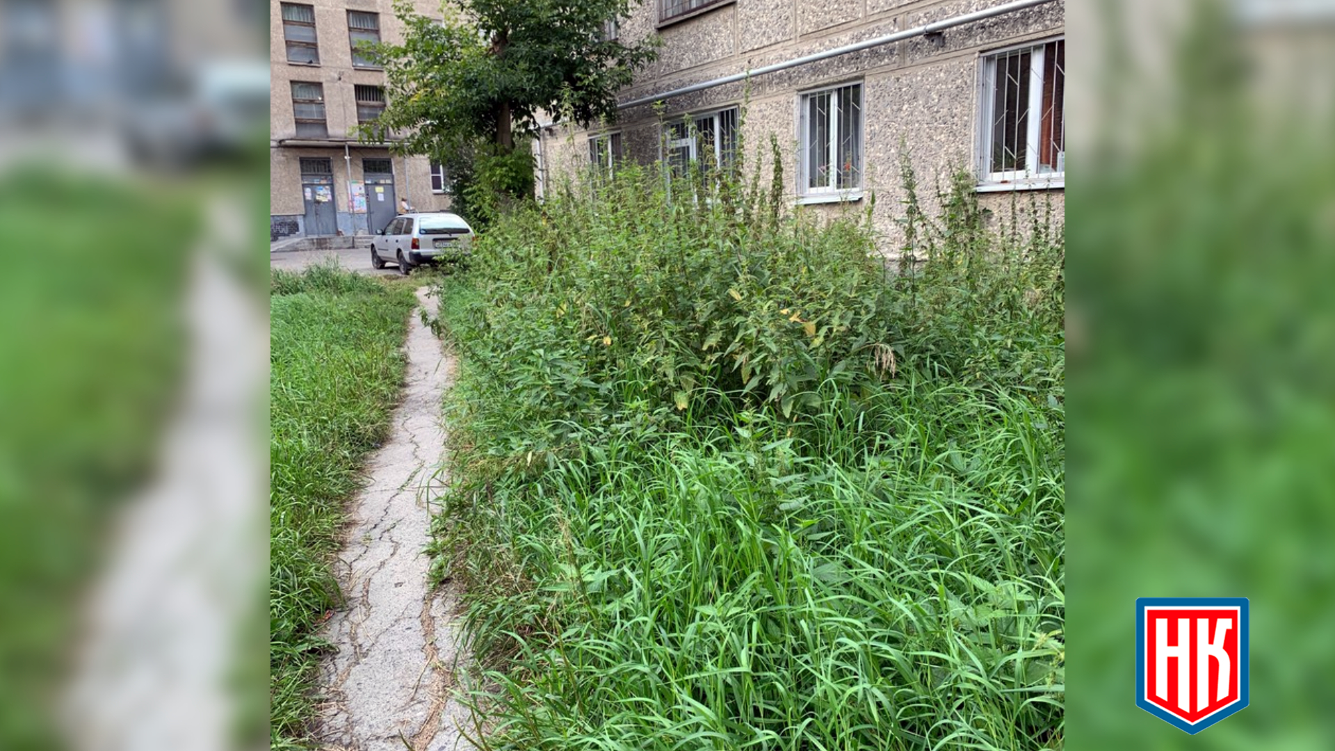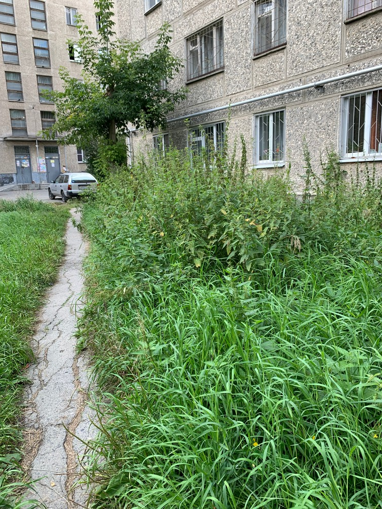 По адресу Новаторов, 19 не окошена придомовая территория и двор. Трава достигает роста взрослого человека, крапива мешает проходу по дорожке, где ходят в том числе пожилые люди и дети.