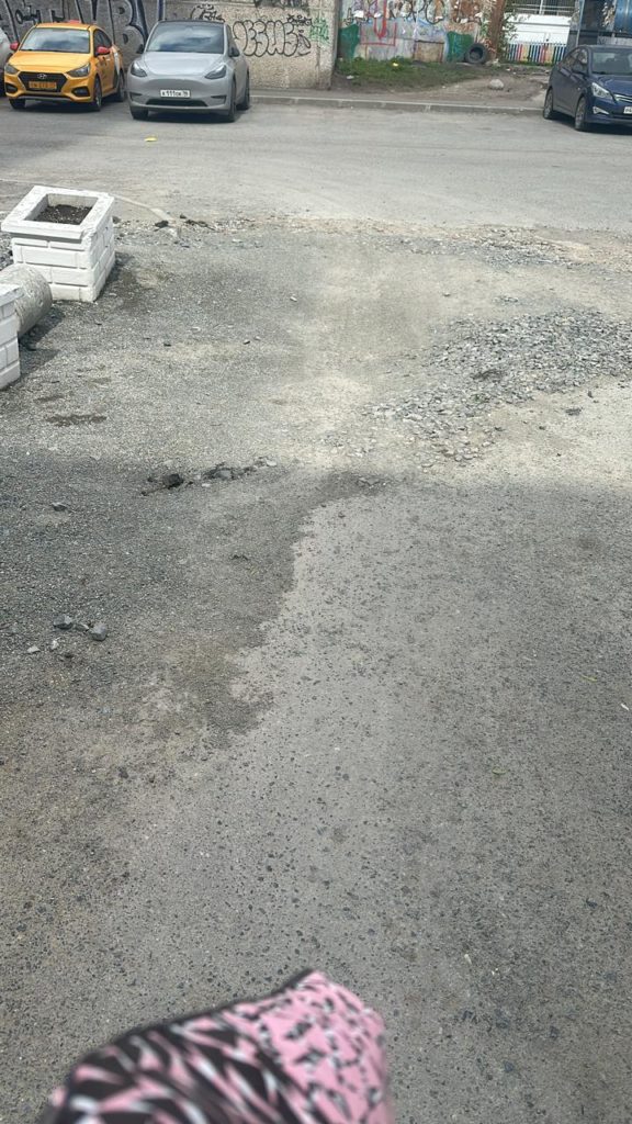 11.05.24, г. Екатеринбург, выезд из паркинга по ул. Волгоградская 29а. Зимой водоканал разрушили асфальтовое покрытие, пришла весна, а ремонта нет.