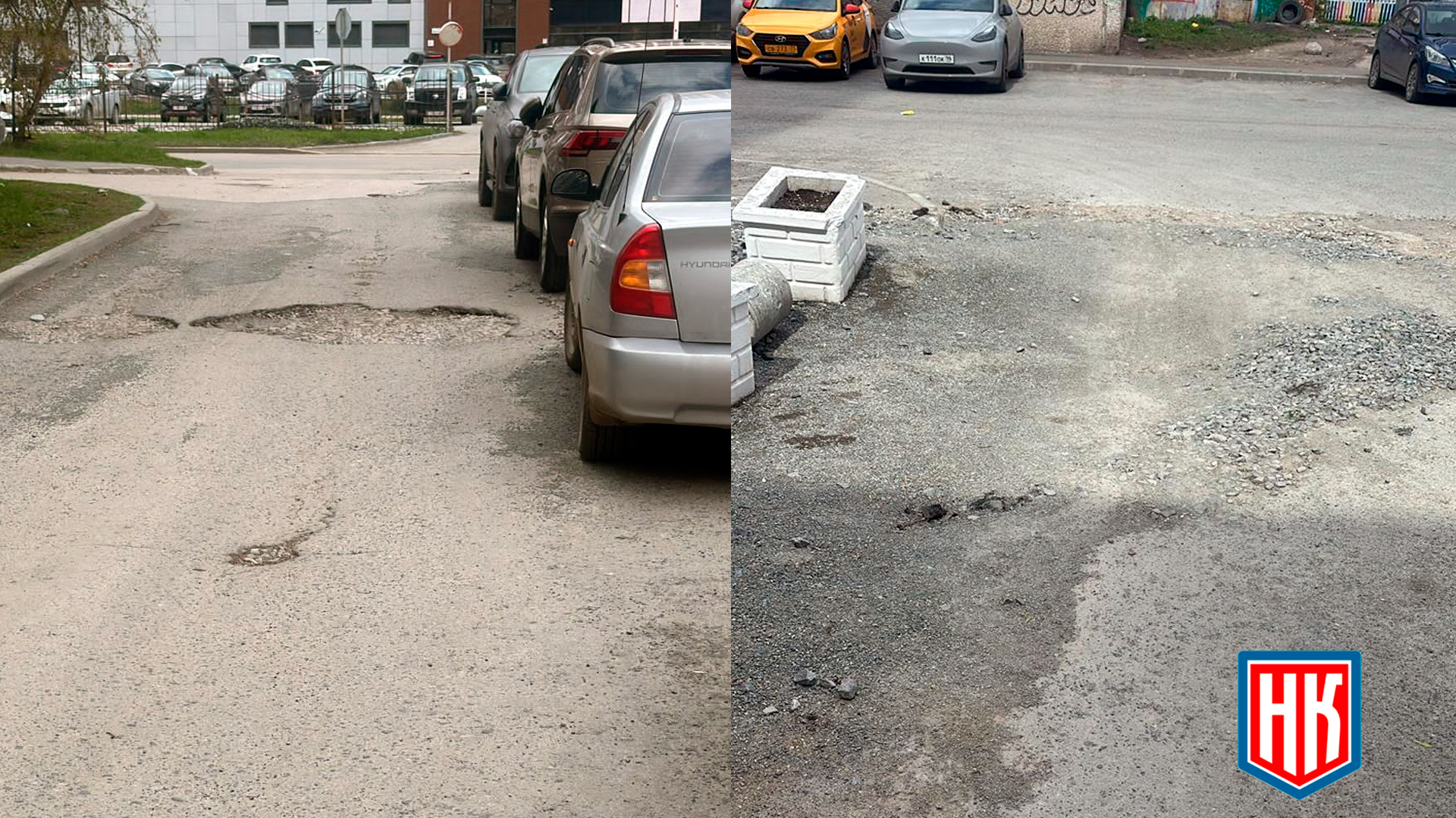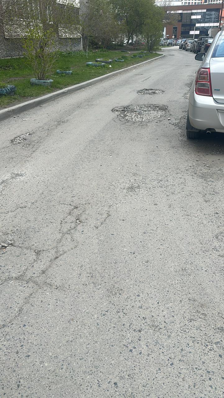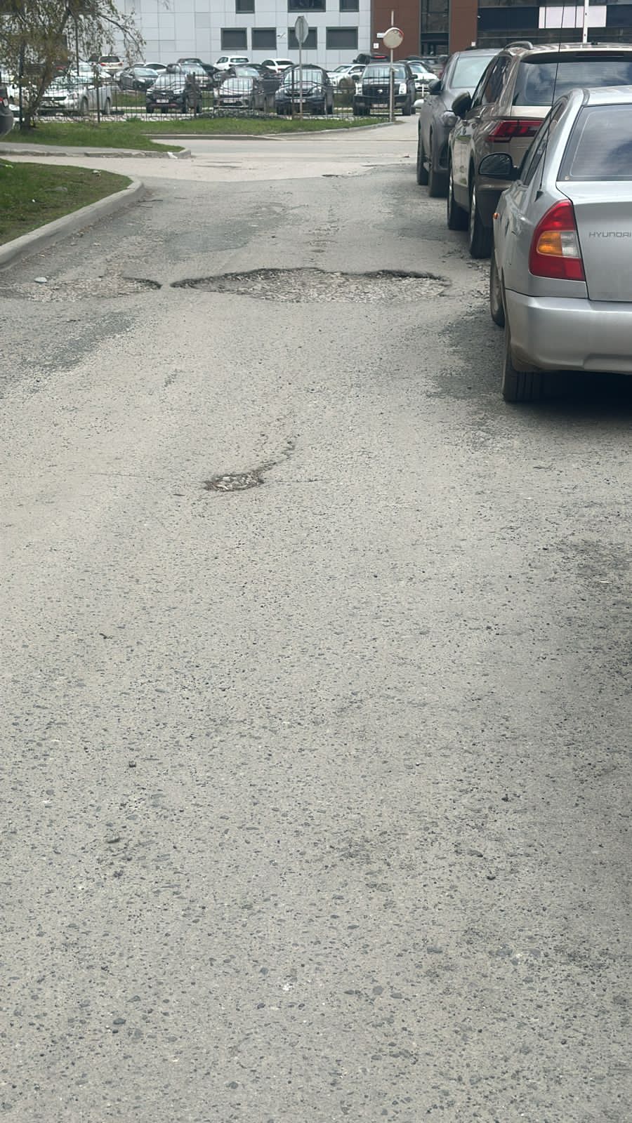 11.05.24 г. Екатеринбург, въезд во двор двух домов по ул. Волгоградская 29а и 31к2. На протяжении нескольких лет ямы все больше, ремонта нет