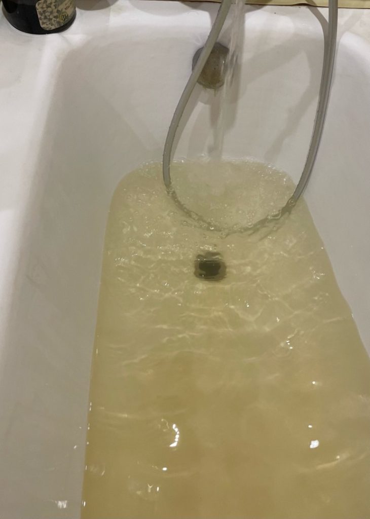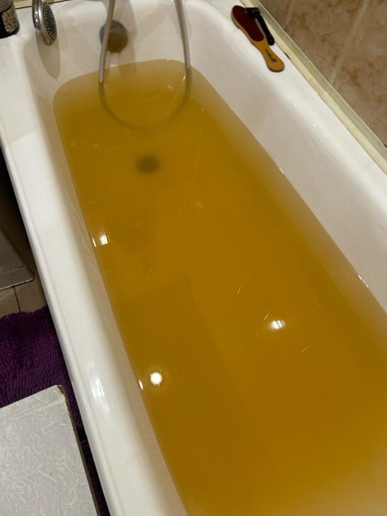03.02.2024 город Кашира. Что происходит с водой в Кашире-2? Почему должны платить за воду, пропуская лишние кубы в пользу ЖКХ, что бы потекла чистая вода? Как в такой воде купать ребенка?