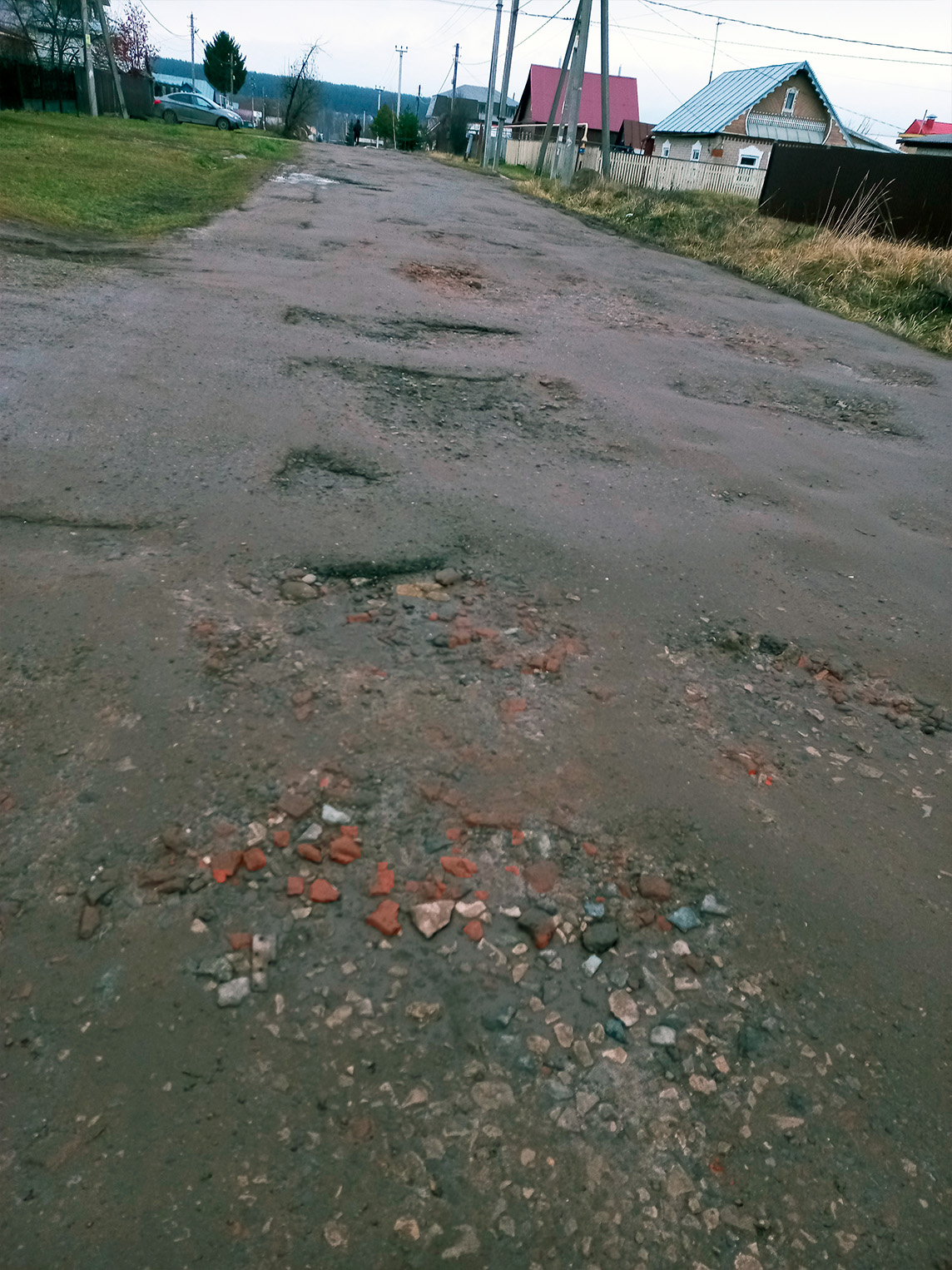 По словам горожан, им приходится самостоятельно засыпать ямы кирпичами и камнями, чтобы хоть как-то поддерживать дорогу в проходимом состоянии.