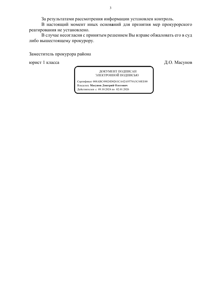 Благодарим неравнодушных граждан за Ваши обращения. Если Вы не согласны с данным ответом Прокуратуры Октябрьского района города Екатеринбурга, пожалуйста, сообщите об этом Нам (желательно с фото/видео доказательствами выполнения работы в неполном объеме или ее невыполнении).