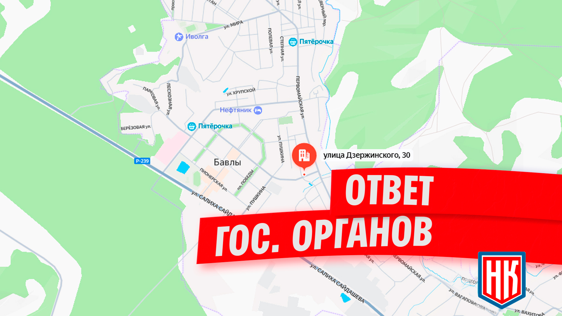 Бавлинская городская прокуратура Республики Татарстан провела проверку по факту бездействия местной администрации. В ответе, зарегистрированном под №ВО-163-25-20920042, указано, что сотрудниками МКП БМР «Водоканал» уже выполнены работы по устранению порывов на улице Дзержинского. В связи с этим оснований для мер прокурорского реагирования не найдено.