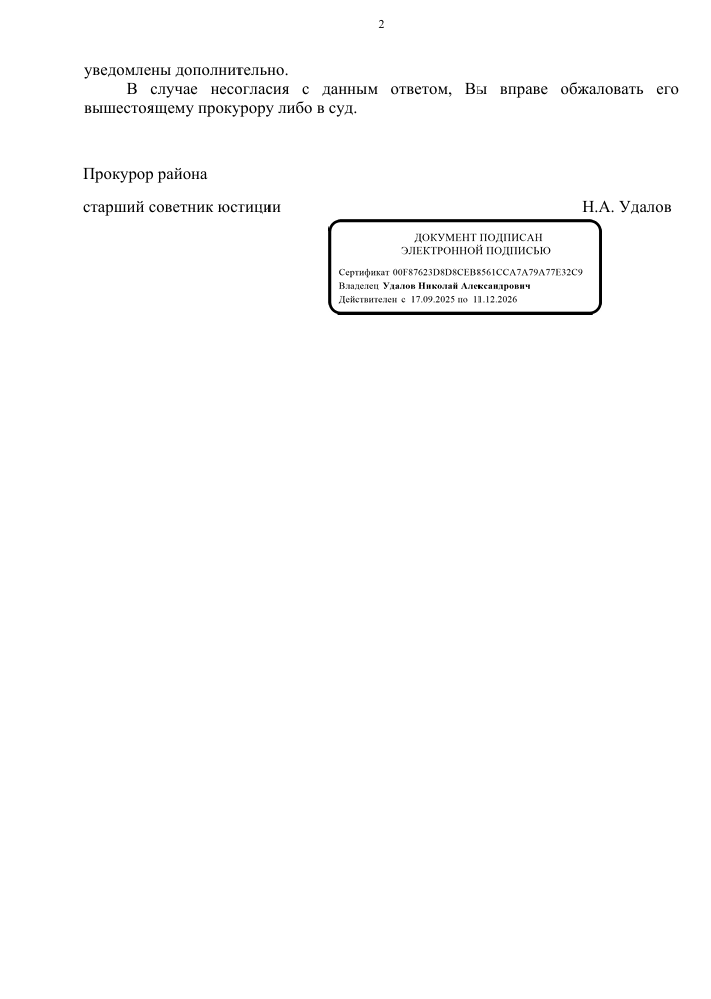 Благодарим неравнодушных граждан за Ваши обращения. Если Вы не согласны с данным ответом Прокуратуры Академического района города Екатеринбурга, пожалуйста, сообщите об этом Нам (желательно с фото/видео доказательствами выполнения работы в неполном объеме или ее невыполнении).