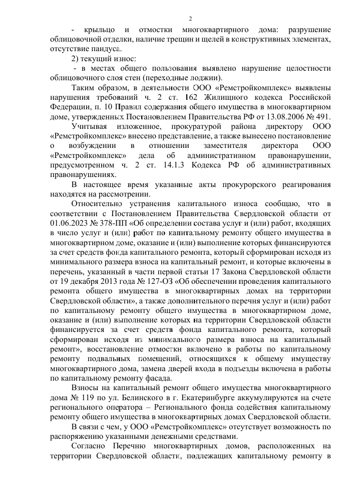 Прокуратура провела проверку по вопросу ремонта на Белинского, 119: что дальше?