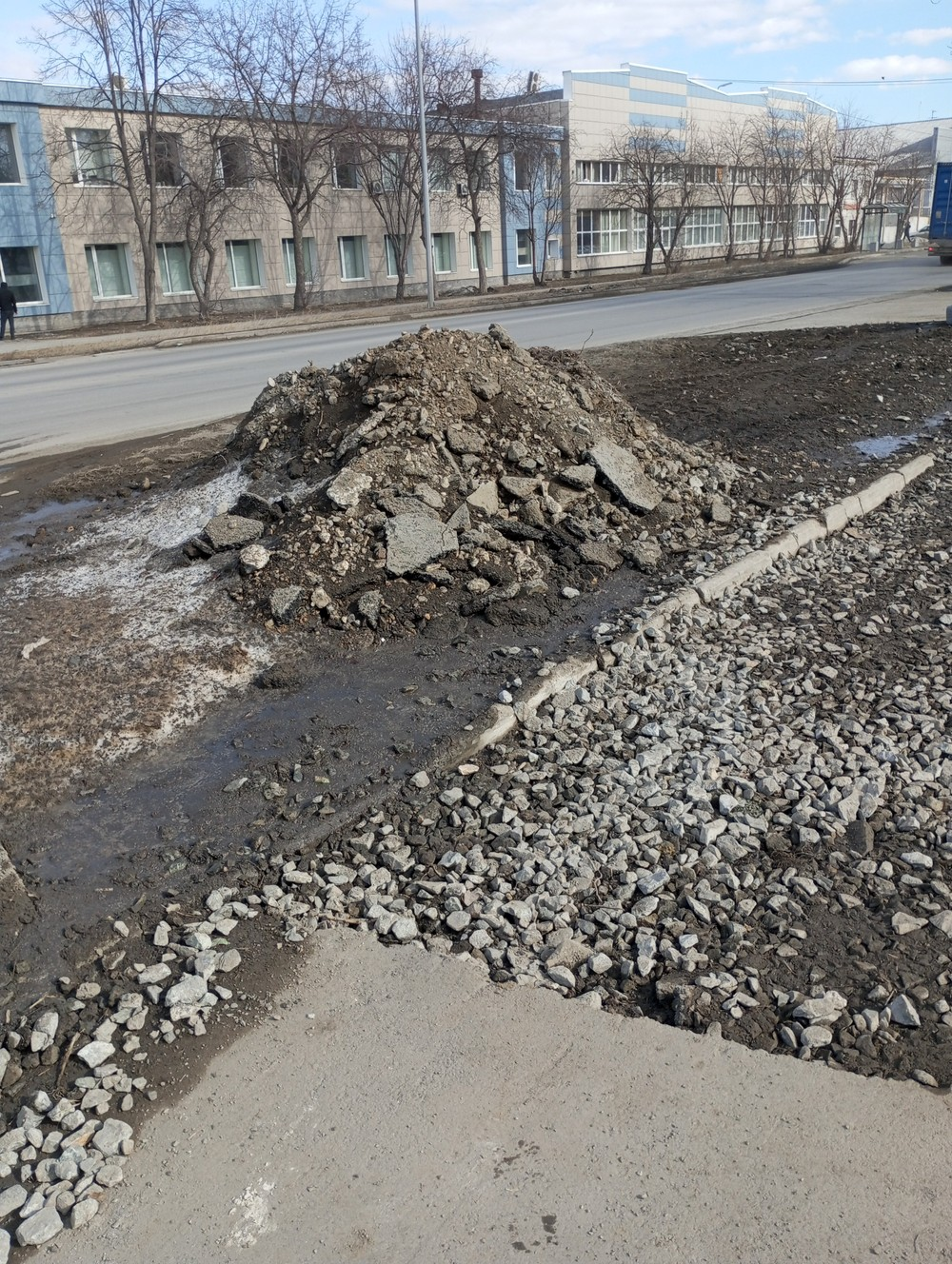 В 2024 году, ближе к зиме, коммунальная служба проводила работы по укладке каких-то труб на участке по улице Маневровой, 41, возле АП 4. Но так и не прибрали за собой. Газон, который был, теперь его совсем нет. А асфальт, который обещали положить, также отсутствует. К тому же, который положили, уже дал трещину, а тут выезд и заезд на прилегающую территорию.