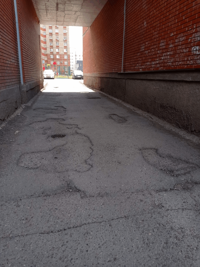 ОБНОВЛЕНИЕ: получен ответ по данному вопросу — Ямочный ремонт завершён: в Альметьевске привели в порядок проезд под аркой на Ленина