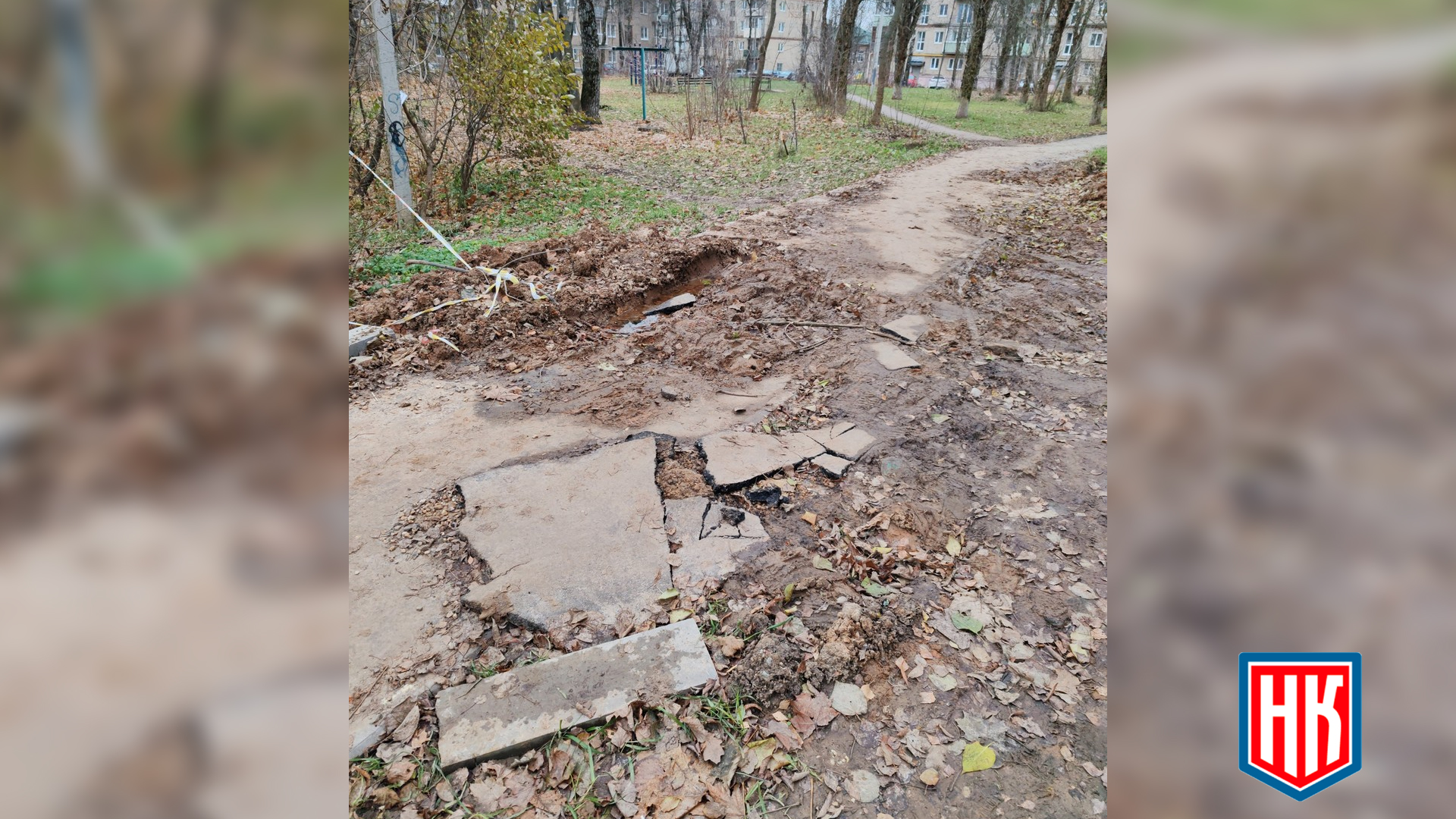 Разбитые плиты и грязь: состояние дорожек на улице Толстого в Сергиевом Посаде оставляет желать лучшего