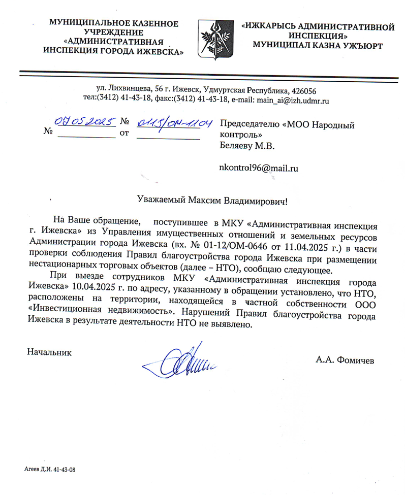 Благодарим неравнодушных граждан за Ваши обращения. Если Вы не согласны с данным ответом МКУ «Административная инспекция города Ижевска», пожалуйста, сообщите об этом Нам (желательно с фото/видео доказательствами выполнения работы в неполном объеме или ее невыполнении).