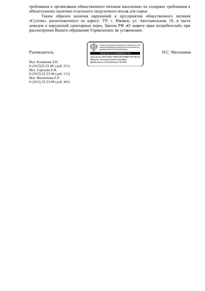 По результатам проверки Управление Роспотребнадзора по Удмуртской Республике не подтвердило факты нарушений.