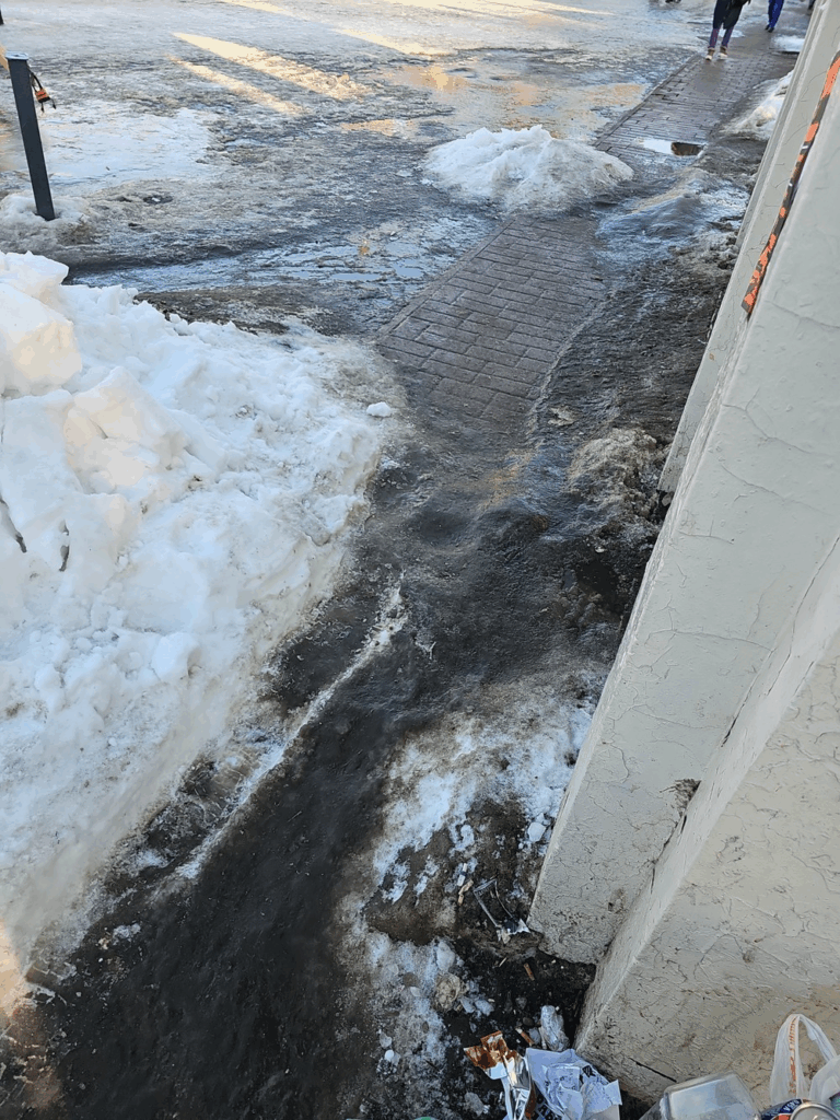 Московская область, Раменский район, рп. Ильинский, ул. Московская, 30 (платформа Ильинская). Не чищен снег, скользкий асфальт. Травмоопасный участок пешеходного тротуара
