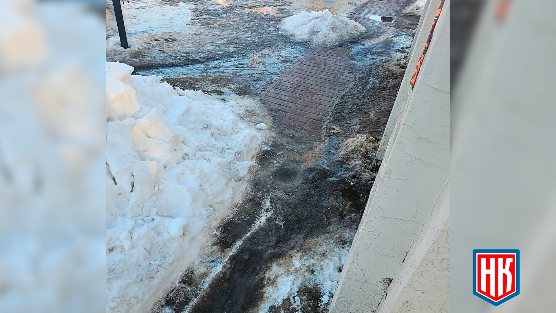 Московская область, Раменский район, рп. Ильинский, ул. Московская, 30 (платформа Ильинская). Не чищен снег, скользкий асфальт. Травмоопасный участок пешеходного тротуара