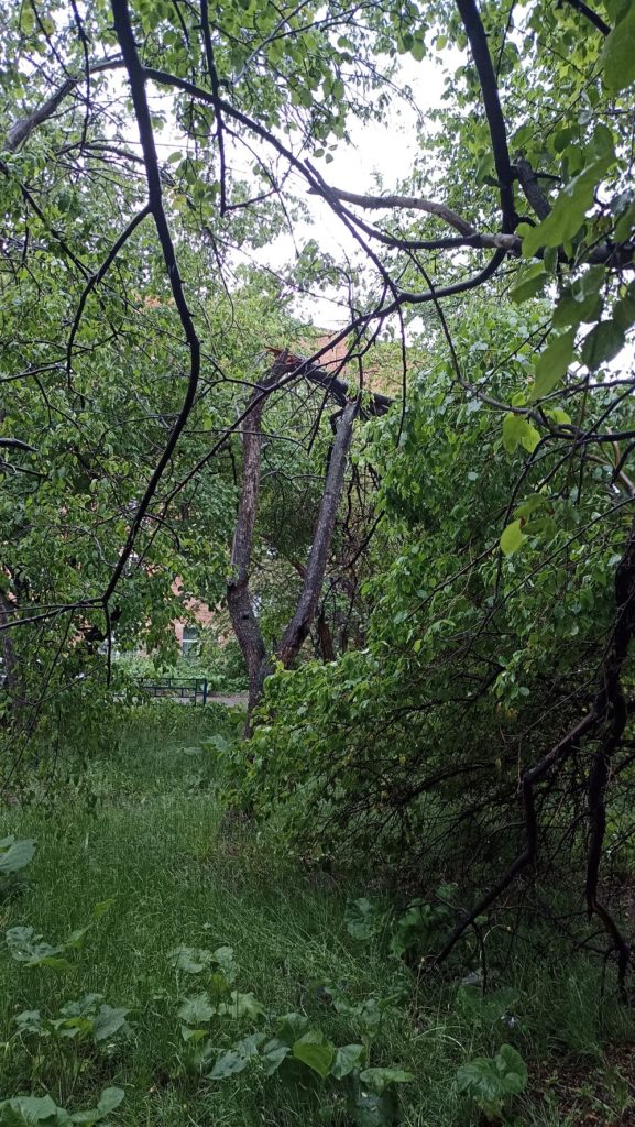 07.06.2024. Екатеринбург. На фотографиях поломанные деревья после снегопада 4 мая 2024 на детской площадке между домами 8 и 10 по ул. Бисертская. В диспетчерскую УК Чкаловская делали заявки сразу после снегопада, 23.05 и 6.06. Ничего не меняется. Помогите, пожалуйста
