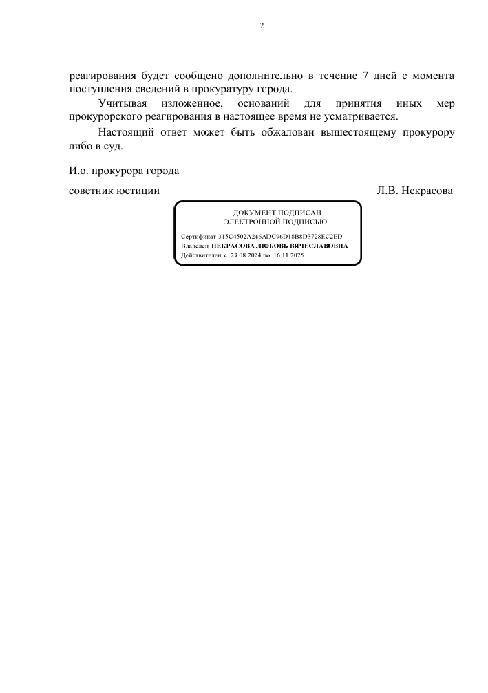 Благодарим неравнодушных граждан за Ваши обращения. Если Вы не согласны с данным ответом Прокуратуры города Первоуральска, пожалуйста, сообщите об этом Нам (желательно с фото/видео доказательствами выполнения работы в неполном объеме или ее невыполнении).