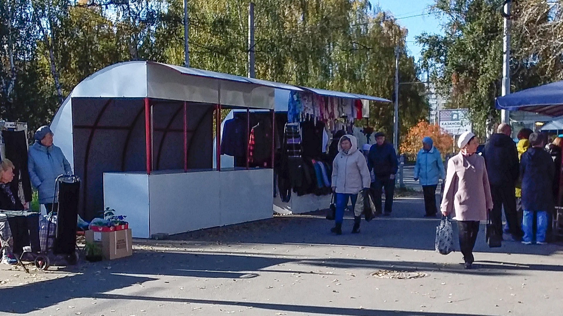 С палаток торгуют бельём, брюками, сорочками и другими вещами. Есть товары, подлежащие обязательной маркировке. Кассовых аппаратов и сертификатов нет, вешалки с трусами, лифами и другими предметами гардероба выставлены чуть ли не на проезжей части. Количество торговцев постоянно увеличивается, и перекрёсток становится похожим на вещевой рынок «Таганский ряд».
