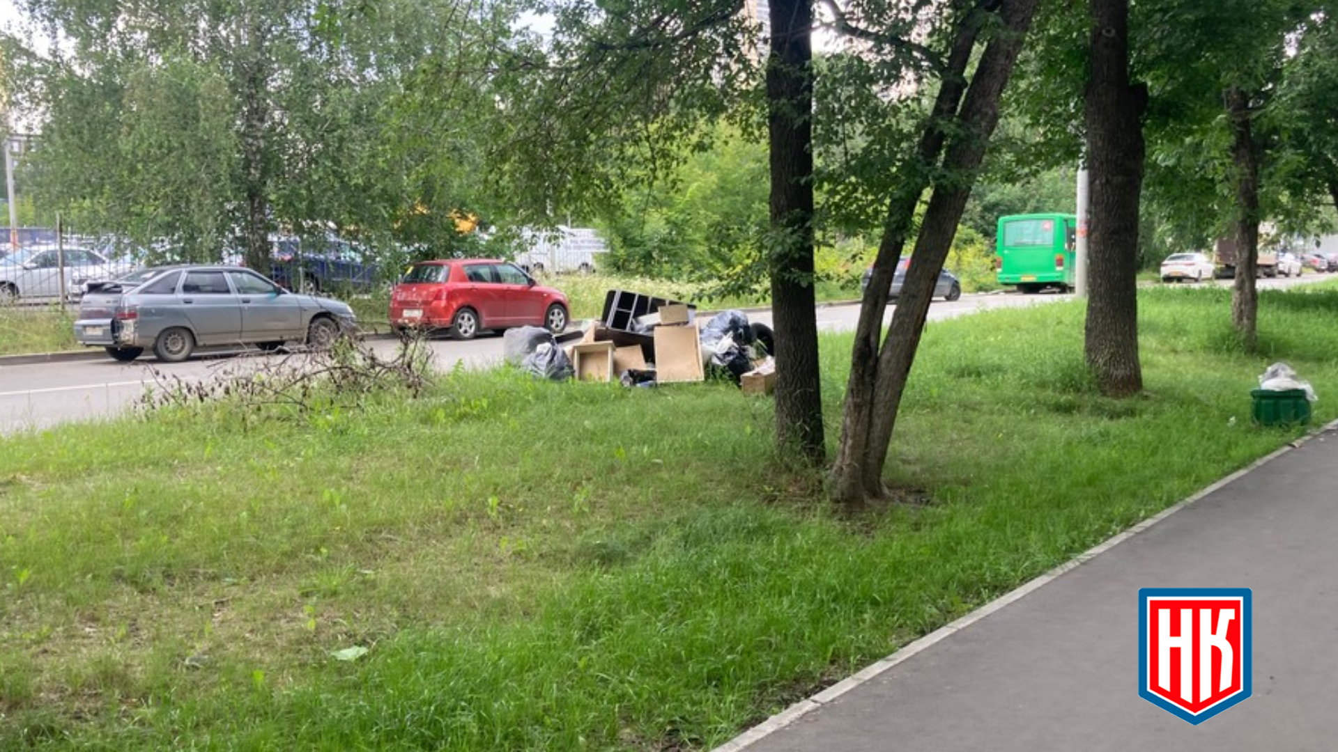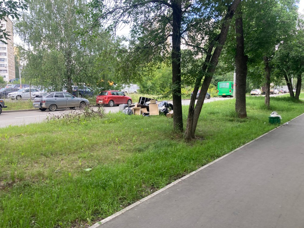 Свалка мусора у дороги напротив дома 29 по улице Патриса Лумумбы, Екатеринбург.