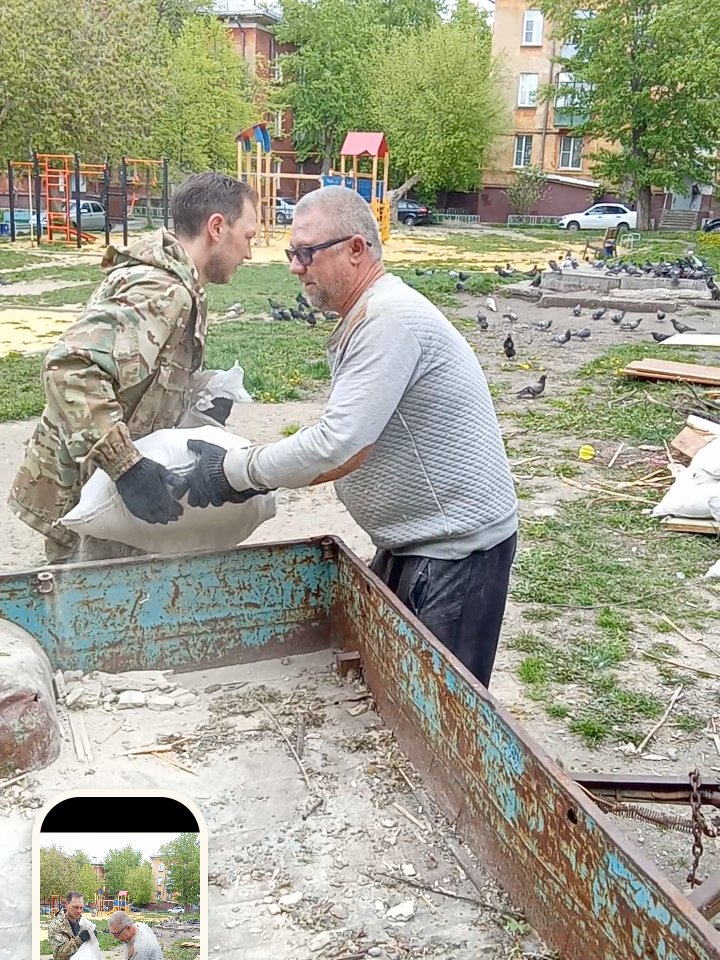 г. Челябинск, ул. Мира, 44. Незаконная свалка строительного мусора во дворе рядом с детской площадкой. На замечания жильцов двора грузчики реагировали нагло, скрылись на автомобиле Шевроле Нива гос. Номер К974РК 174. Автомобиль был припаркован на газоне, траектория движения автомобиля через двор не по проезжей части