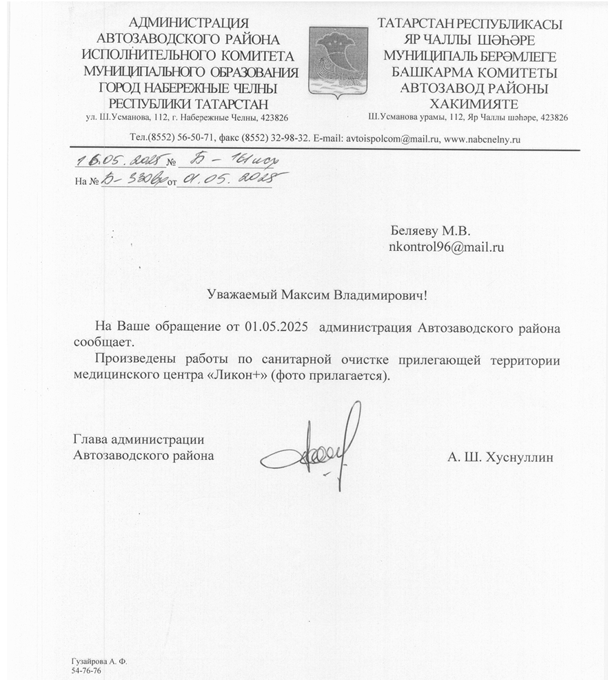 Благодарим неравнодушных граждан за Ваши обращения. Если Вы не согласны с данным ответом Администрации Автозаводского района города Набережные Челны, пожалуйста, сообщите об этом нам (желательно с фото/видео доказательствами выполнения работы в неполном объеме или ее невыполнении).