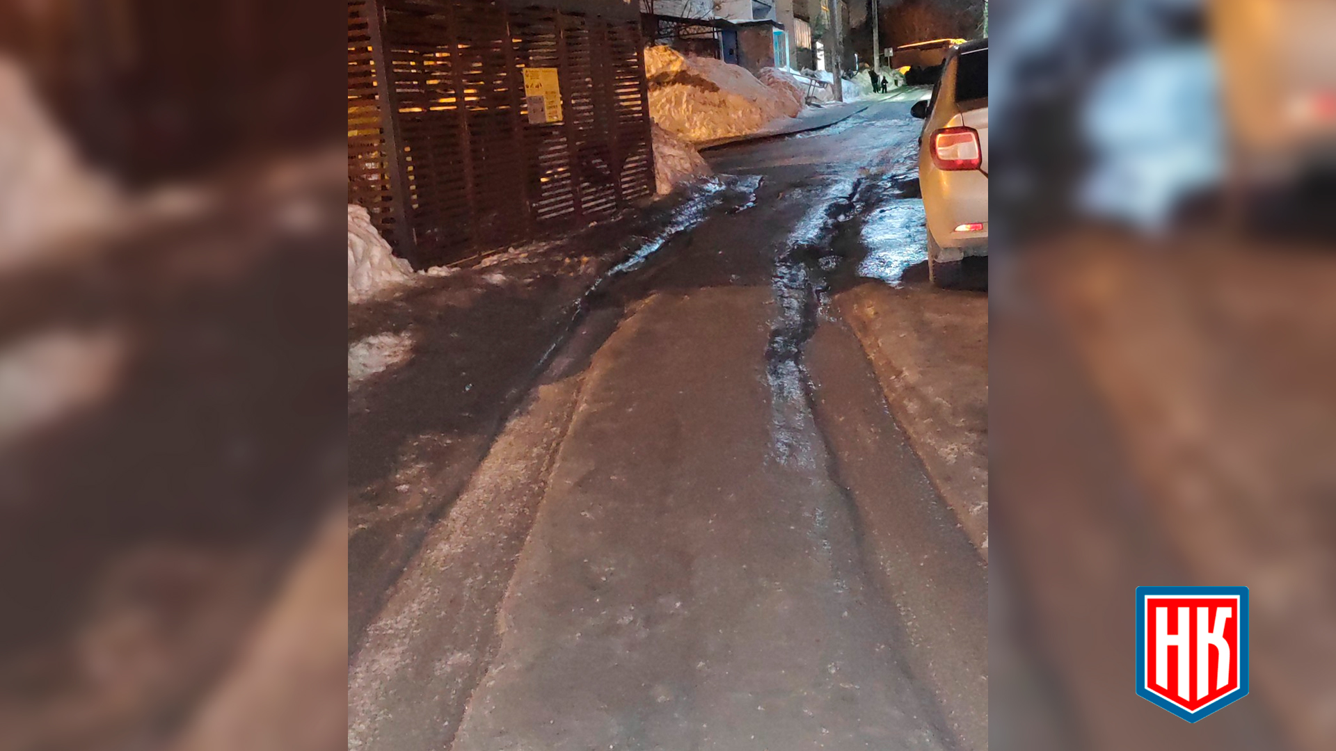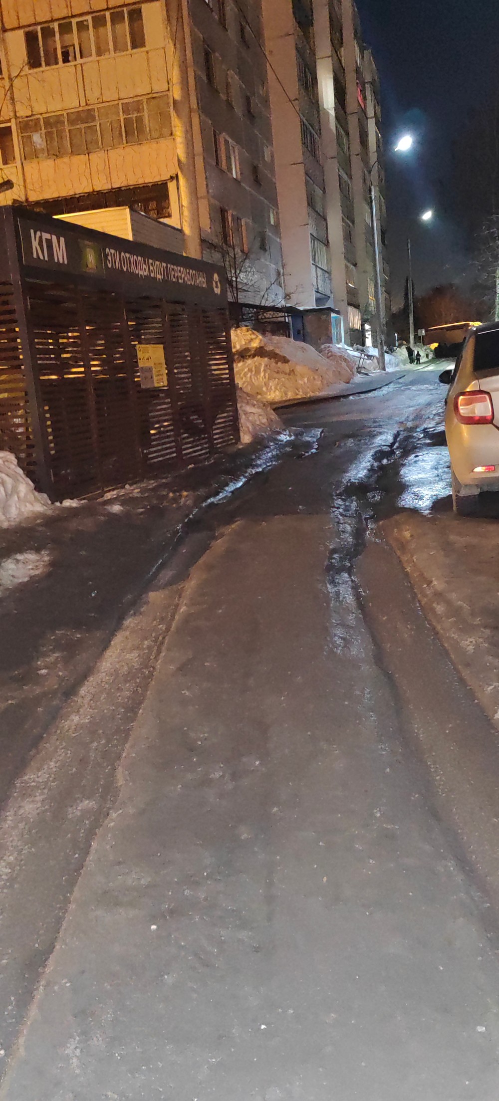 21.03.2024 город Казань, авиастроительный район. Проезжая часть между домом Побежимова 39 и Побежимова 37 — единственная дорога для пешеходов, так как дорожка для пешеходов завалена снегом. И эта единственная дорога — большой кусок льда, который тает. Сама лично серьёзно упала на колено, не представляю как ходят там бабушки и дедушки. Срочно в течении завтрашнего дня просим принять меры, а не ждать пока эта ледяная дорога растает весной