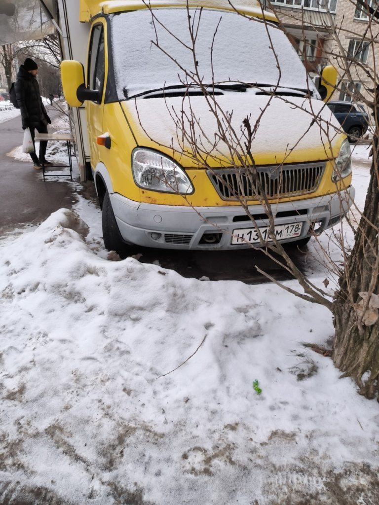 Санкт-Петербург, Ленсовета 89, Парковка на газоне и продажа кисломолочной продукции.