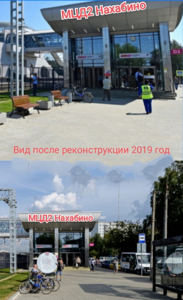 МЦД-2 Нахабино запустили в работу в 2019 году. По словам мэра города Москвы С. С. Собянина: все прилегающие территории ЖД станции должны быть оформлены в едином стиле.