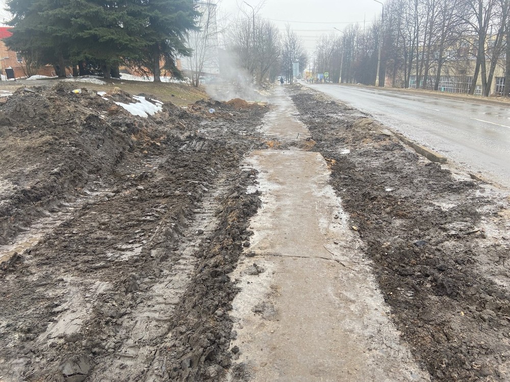 26.03.2024 город Кашира. Ул. Клубная, 5А. Когда в порядок приведут? Тротуар обезображен до невообразимости. Люди ходят по грязному и битому тротуару. Ходить невозможно! Просьба отреагировать.